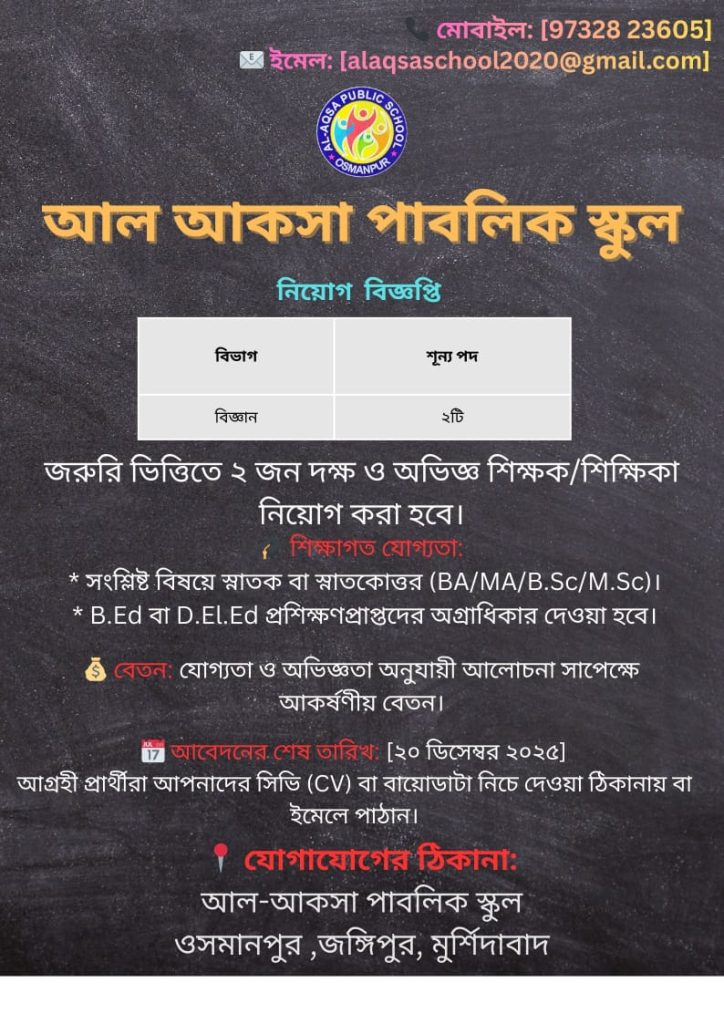 1️⃣ আবেদন করুন: alaqsaschool.co.in